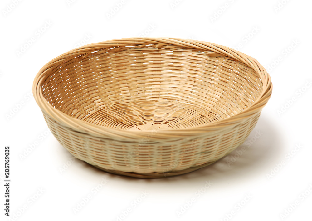 Bamboo basket hand made isolated on white background. Woven from bamboo tray.