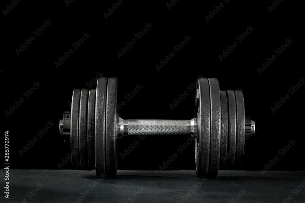 Dumbbell, barbell and workout in the gym. Woman lifting weights.