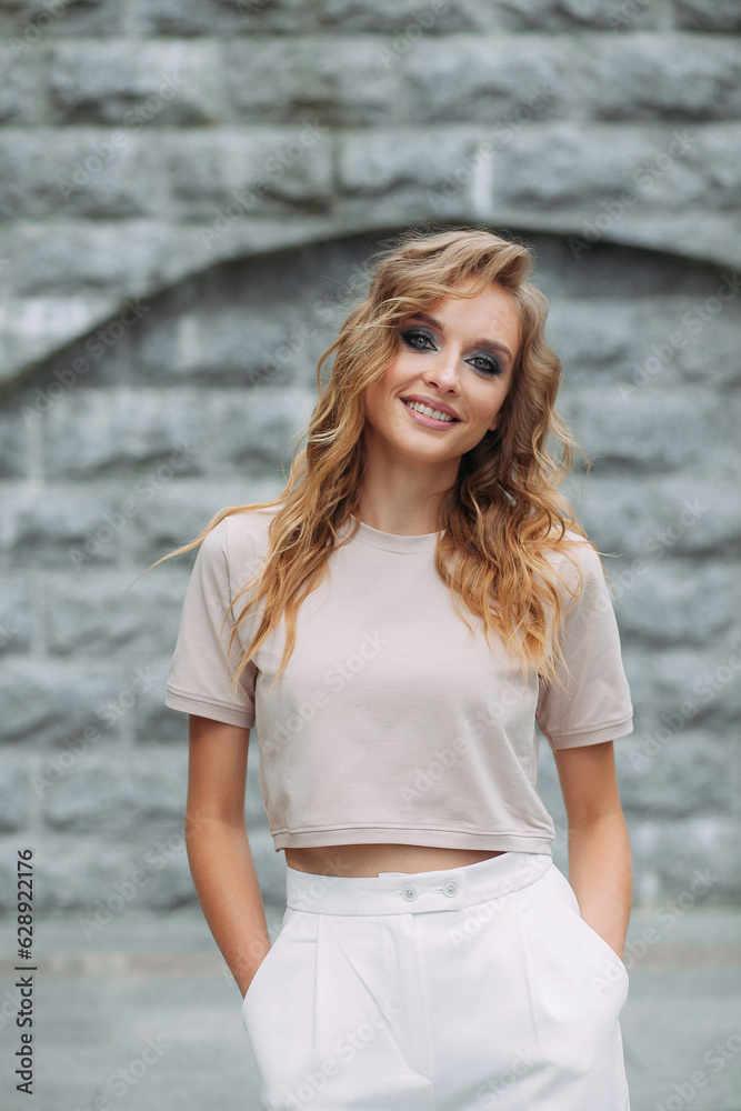 Beautiful carefree long hair asian girl in the yellow hat and knitted sweater from behind in autumn corn field. Sensitivity to nature concept