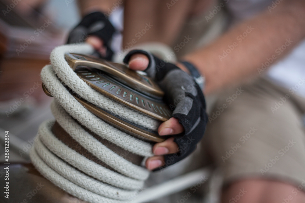 Schot auf Winschtrommel, Segelyacht, Detail