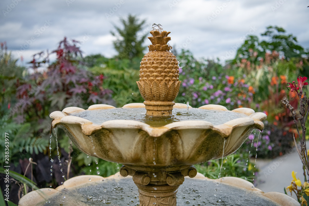 pineapple fountain in English garden