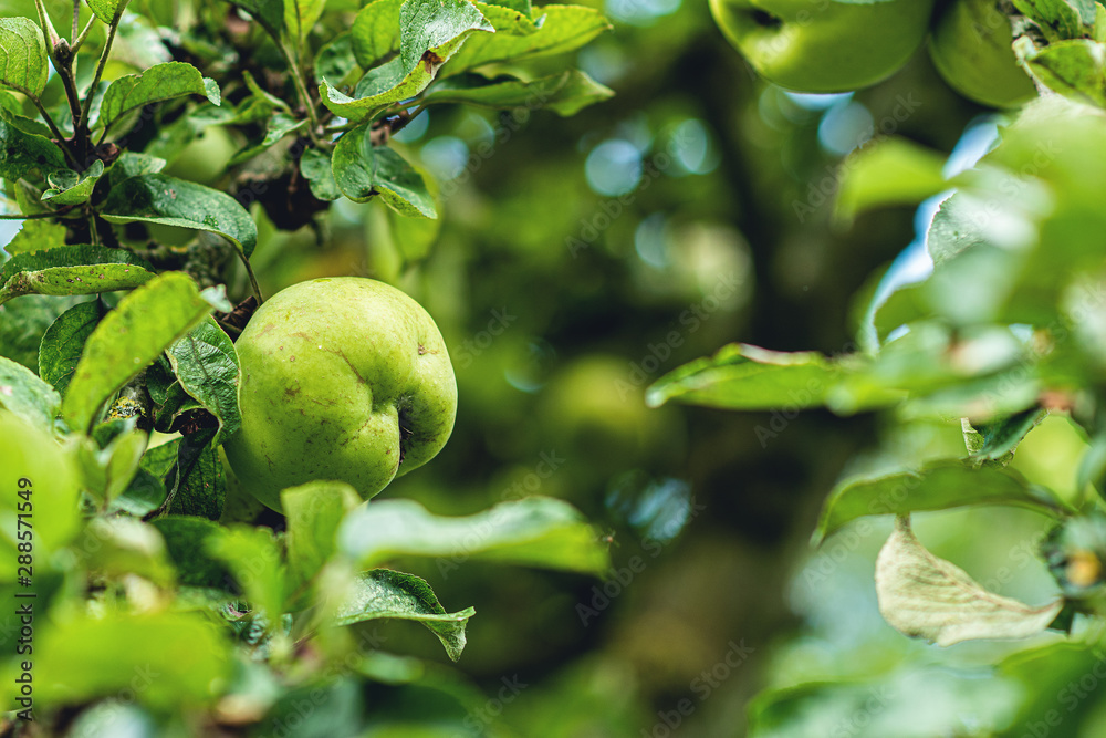 reifer grüner Apfel am Baum