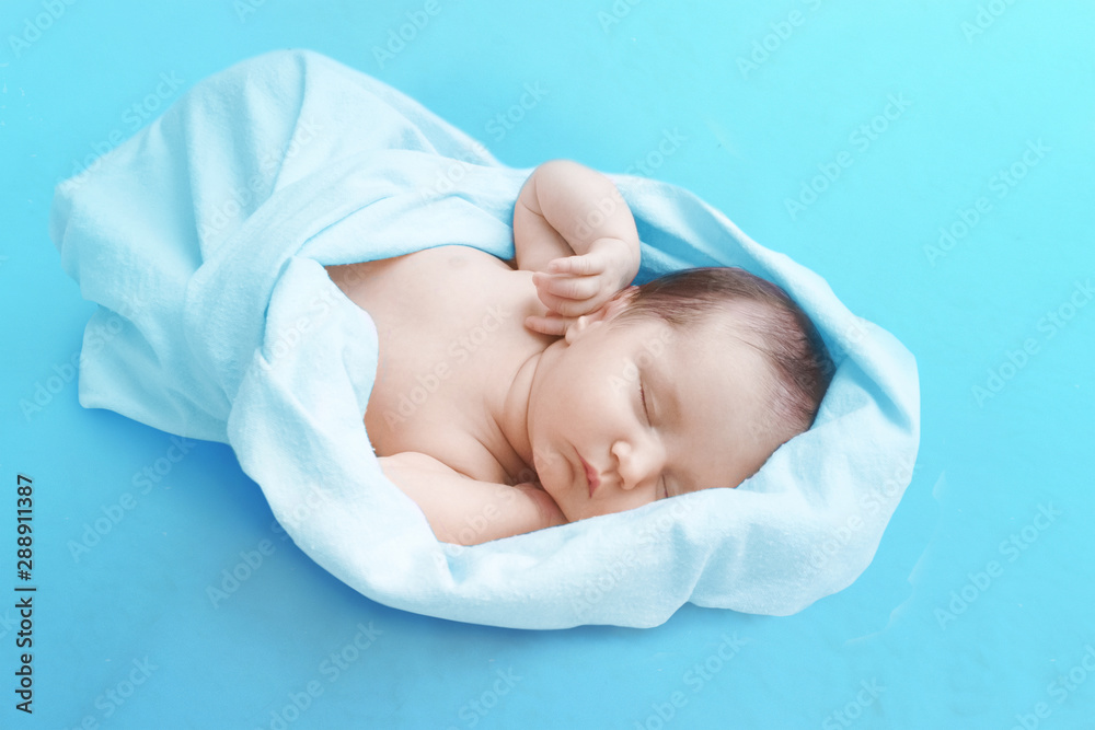 Newborn baby boy sleep on blue blanket