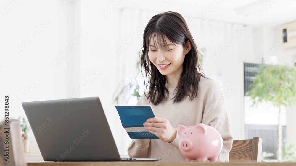 Flat-lay of freshly baked sourdough bread loaf and bread slices on rustic wooden board over grey concrete table background, top view