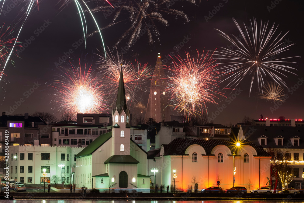 Mit einem Silvesterfeuerwerk über der isländischen Hauptstadt begrüßen die Isländer das neue Jahr.