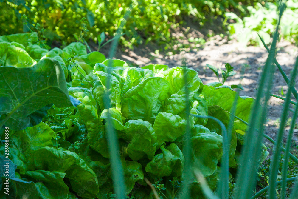 summer salad in the garden in flower bed