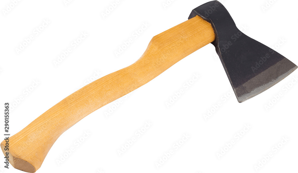 New small hand axe with wooden handle isolated on white background with clipping paths