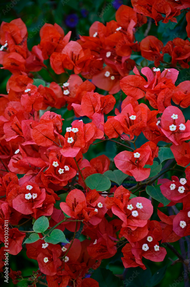 Close up of a colourful red Bougainvillea in a Mediterranean garden