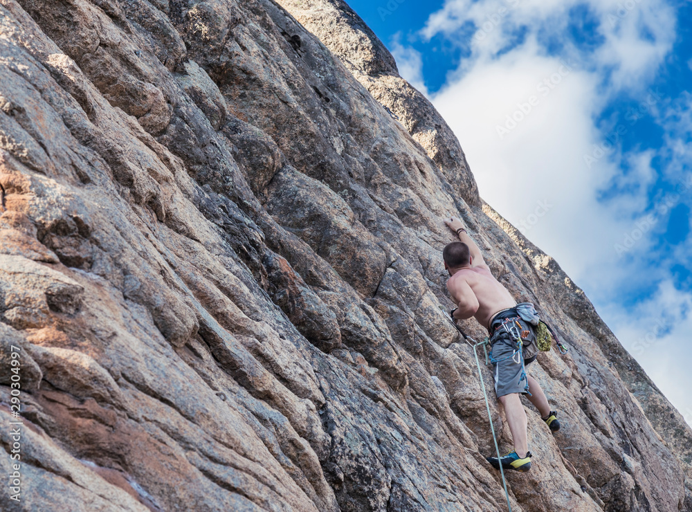 El joven Jorge escalando por una pared vertical en La Pedriza, en la Sierra de Madrid