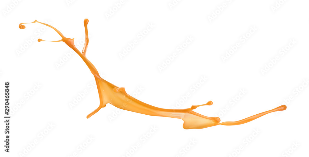 Splash of melted sweet caramel on a white background