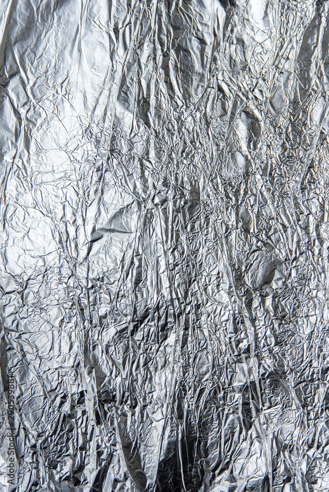 The texture of aluminum foil. Crumpled foil.