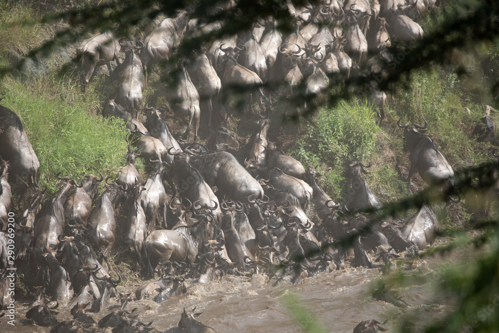 The Wildebeest migration on the banks of the Mara River. Every Year 1.5 million cross the Masai Mara in Kenya.
