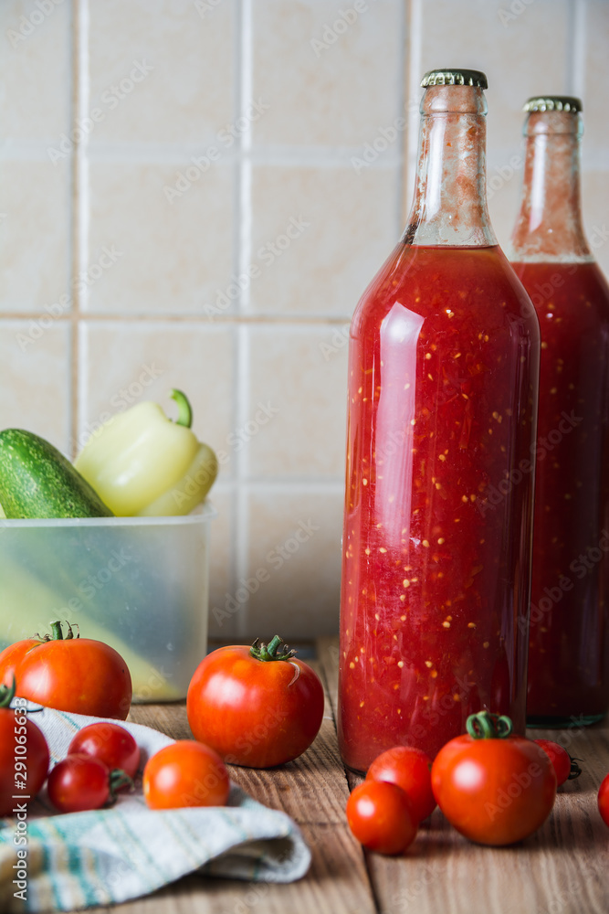 Fresh red tomatoes on a kitchen table waiting for preparation of the winter stores