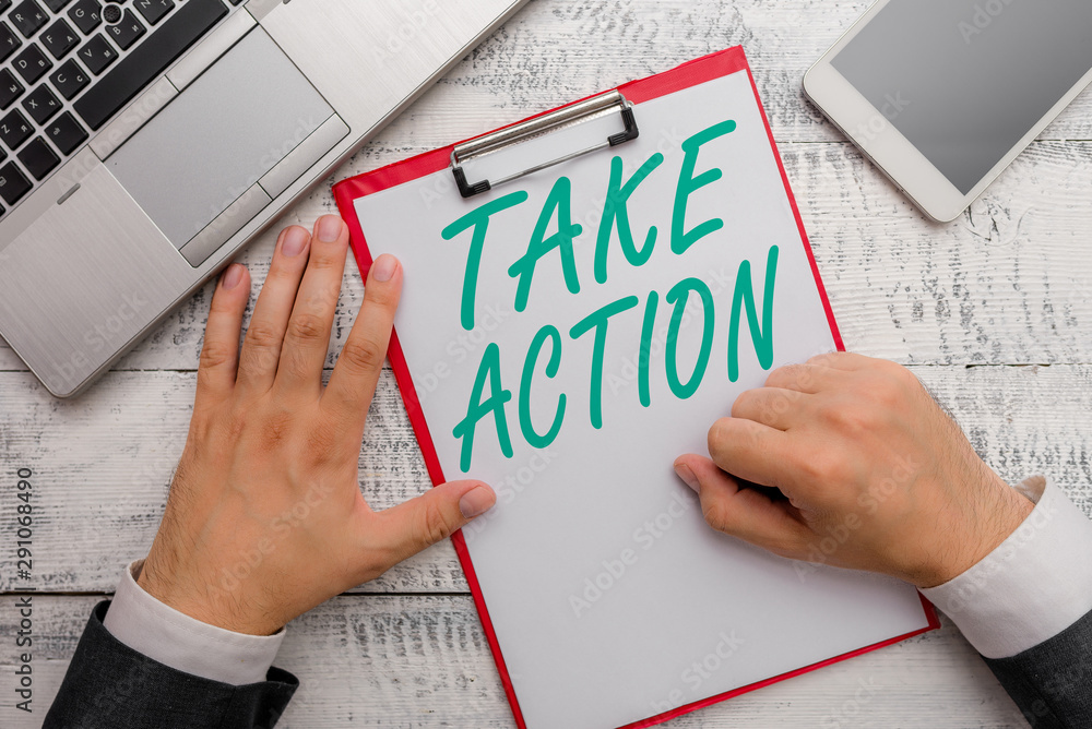Conceptual hand writing showing Take Action. Concept meaning advices someone to do something or reaction right now