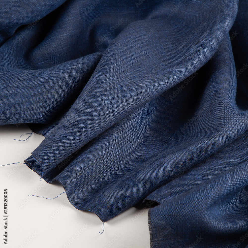 Blue crumpled linen fabric cloth