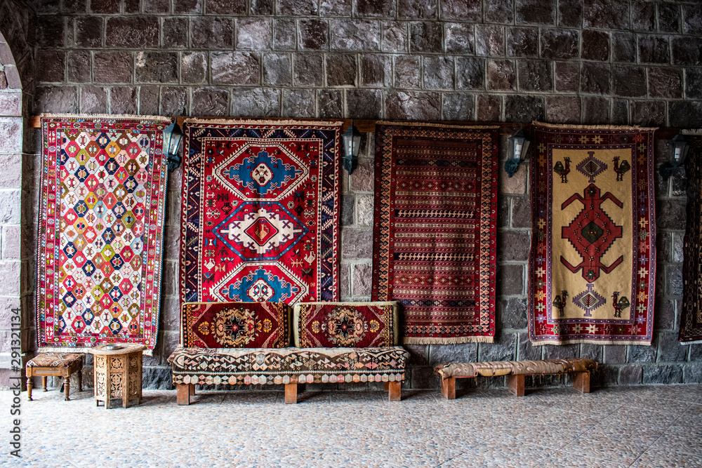 Turkey, Middle East: Turkish rugs hand knotted according to ancient tradition on display in a shop of Dogubayazıt, on the road to Mount Ararat, Agri Dagi, the resting place of Noah's Ark