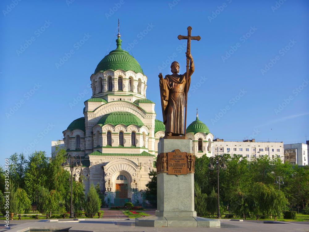 Domes of the Vladimir Cathedral in the city of Astrakhan.Russia.