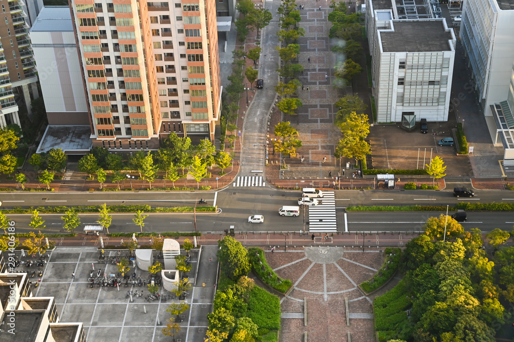 Fukuoka street during sunset from Fukuoka tower, Japan