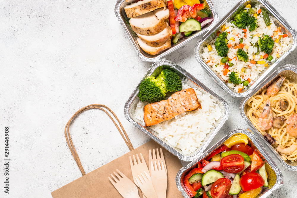 Food delivery concept - healthy lunch in boxes.