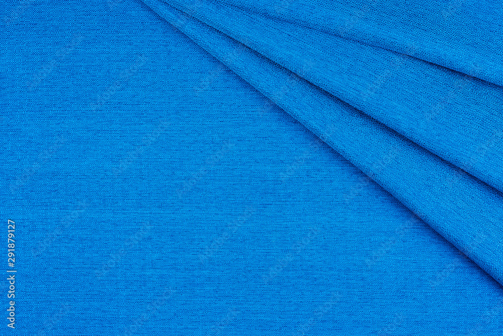 Bright blue fabric texture with folds.