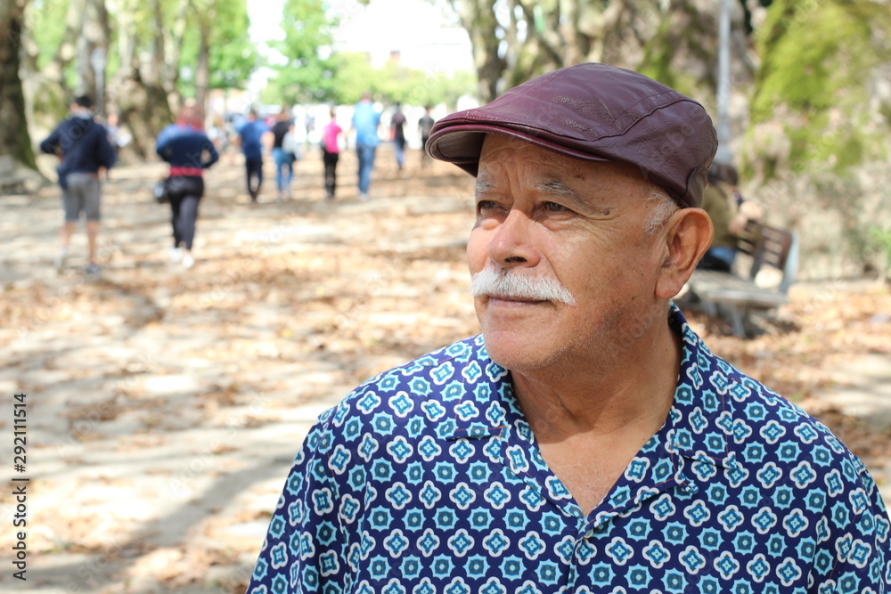 Senior Hispanic man outdoor headshot