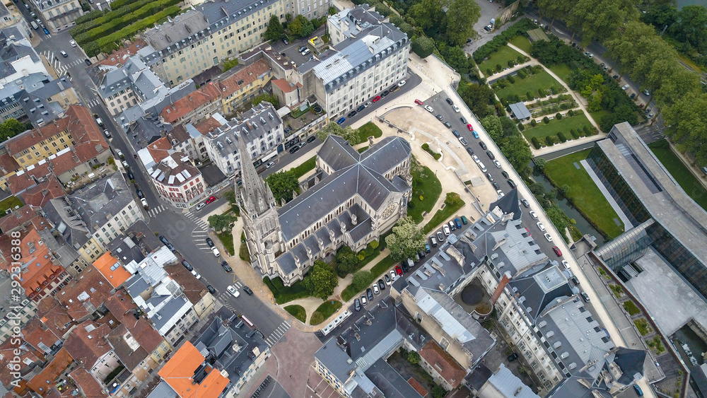 Pyrenees City Pau and Church from drone