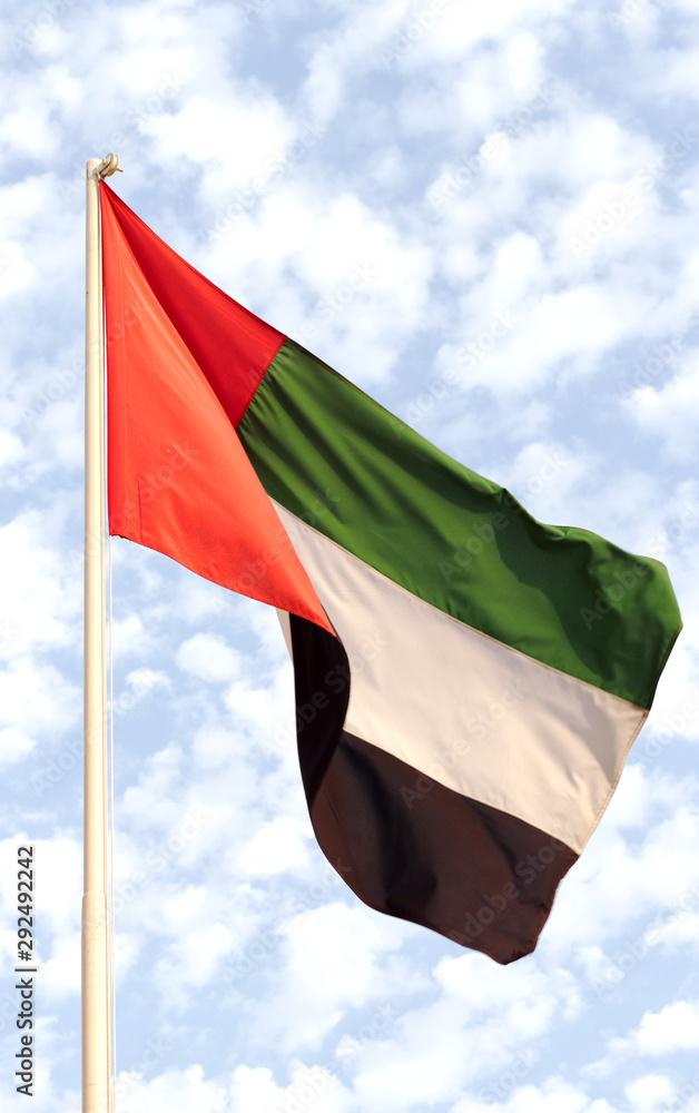 A United Arab Emirates flag flying against clean and tranquil sky. UAE celebrates it's national day on 2nd December every year.