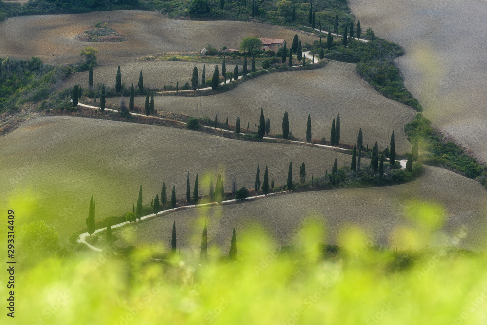 An unusual road between the Tuscan fields and landscapes.