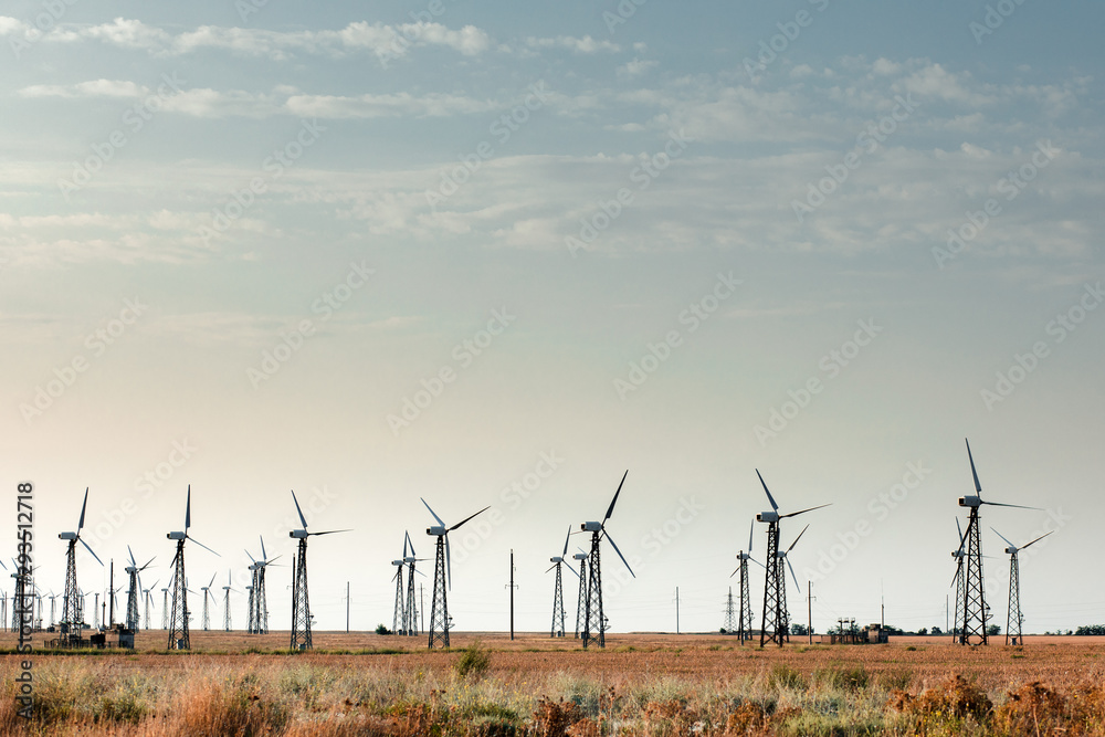 Windmills for electric power production.
