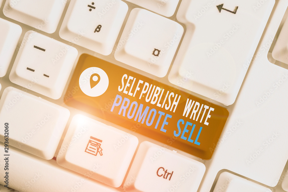 Word writing text Self Publish Write Promote Sell. Business photo showcasing Auto promotion writing Marketing Publicity White pc keyboard with empty note paper above white background key copy space