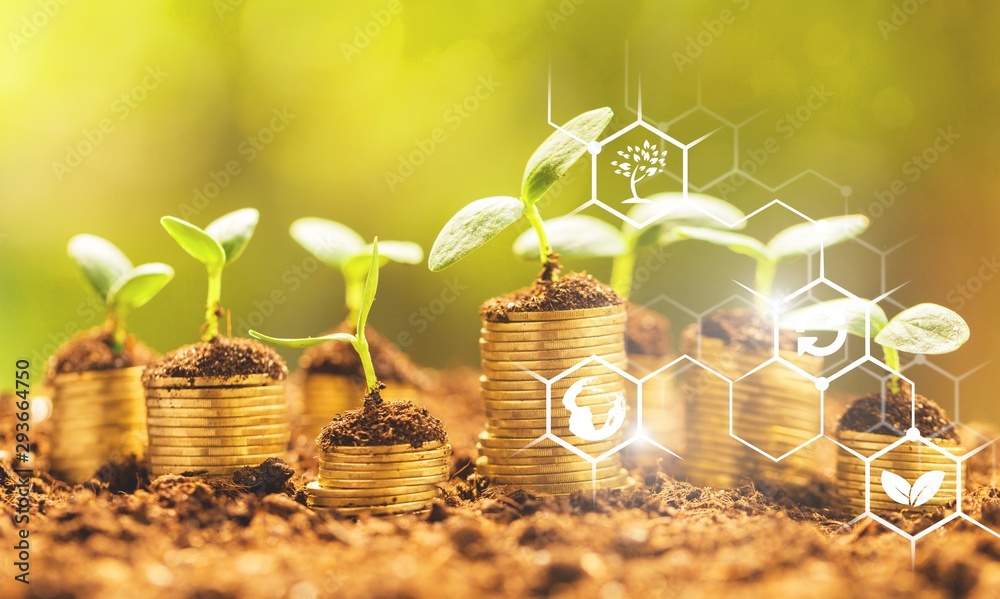 Golden coils in soil with young plants