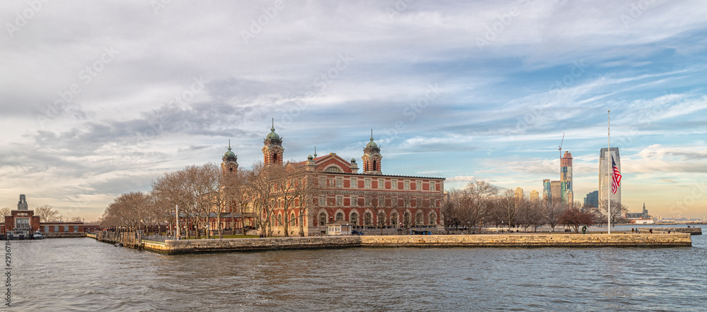 Ellis Island-New York City, Immigration museum Daylight view with clouds in sky in background