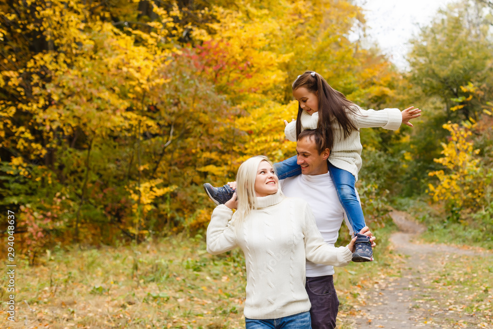 Family with child go in autumn park