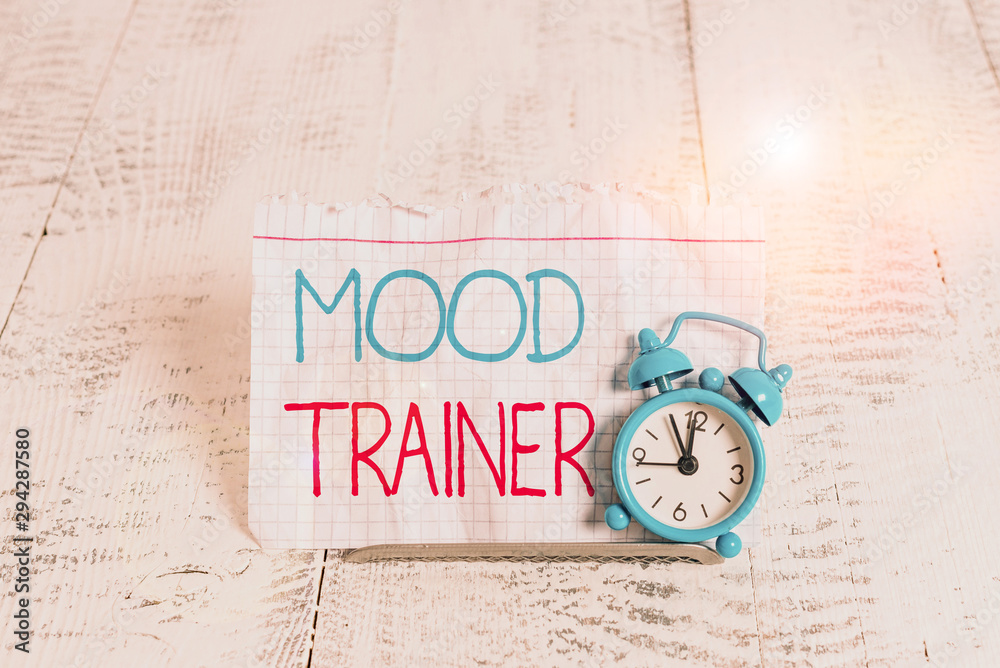 Writing note showing Mood Trainer. Business concept for a demonstrating who trains to alleviate mood disorders of a demonstrating