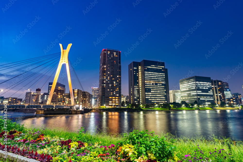 佃島公園から見たタワーマンションの夜景(東京都中央区)
