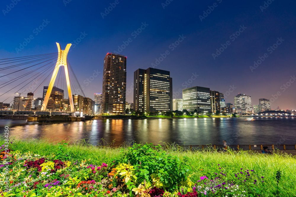 佃島公園から見たタワーマンションの夜景(東京都中央区)