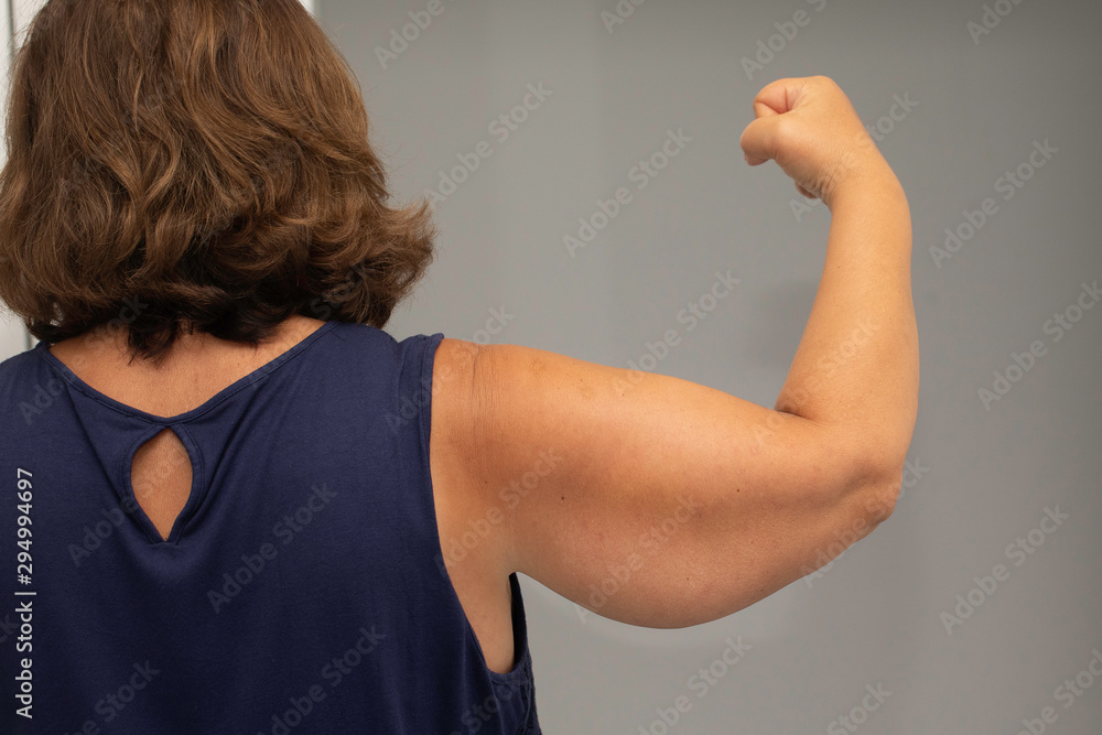 Sagging skin on mature woman arm