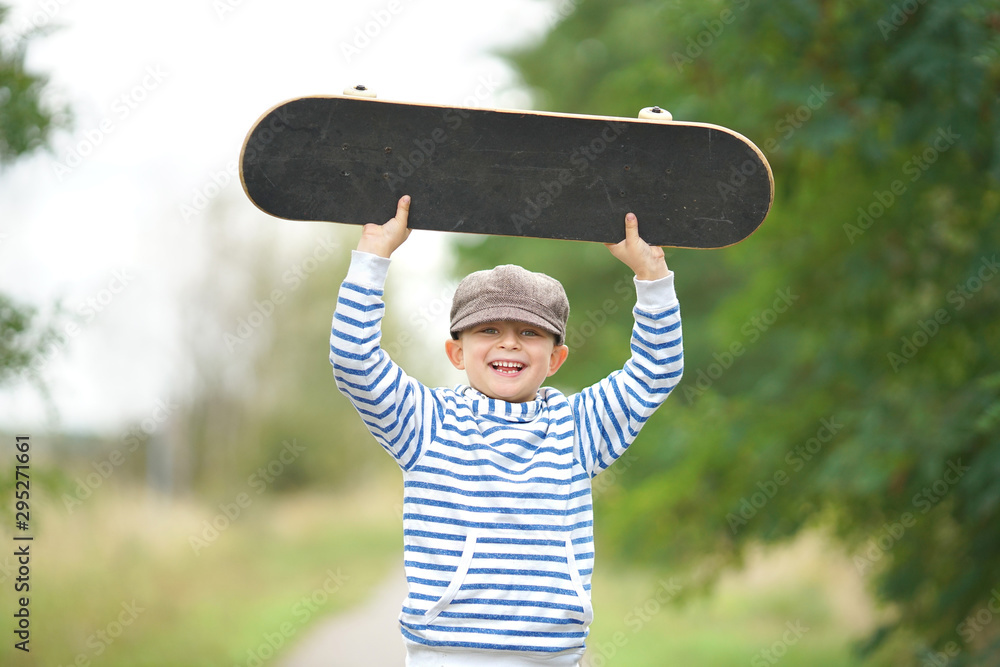 lachender Junge mit Skateboard