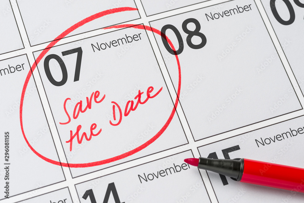 Save the Date written on a calendar - November 7