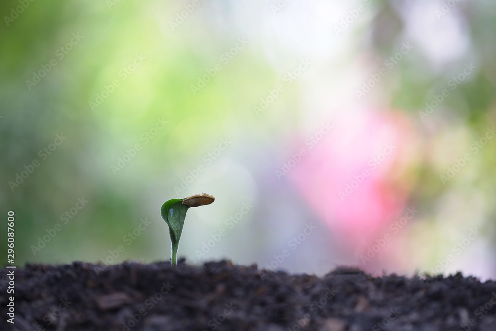 small little pumpkin plant growing with dark brown soil