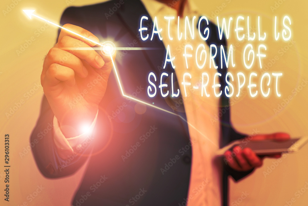Conceptual hand writing showing Eating Well Is A Form Of Self Respect. Concept meaning a quote of promoting healthy lifestyle