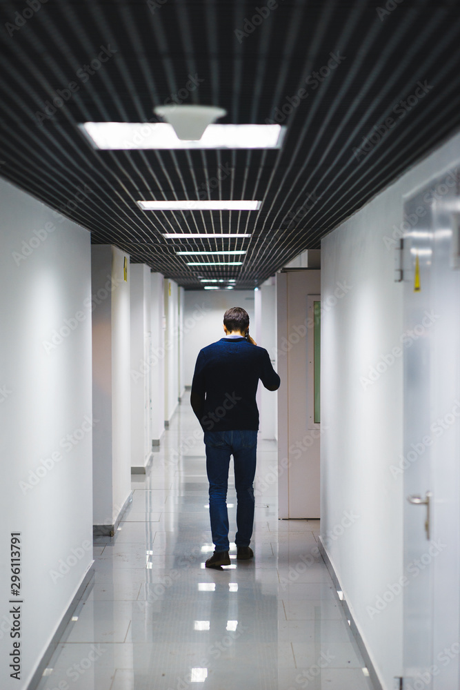 Interior internal corridor of modern office, industrial premises, laboratories or institutions.