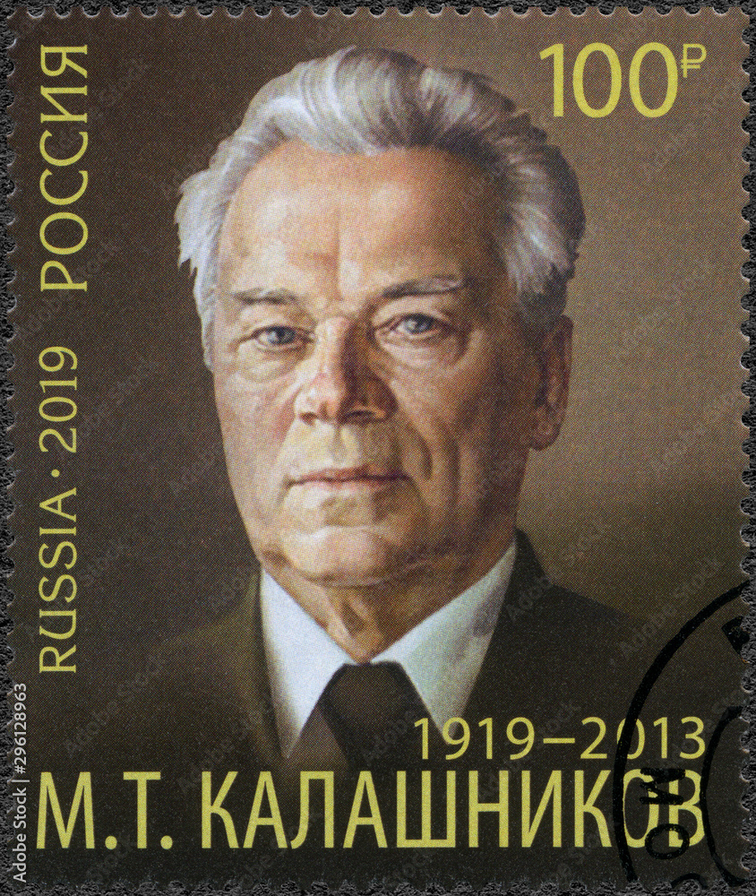 RUSSIA - 2019: shows Lieutenant General Mikhail Timofeyevich Kalashnikovv (1919-2013), invertor, Holder of the Order of Saint Andrew the First Called, 2019