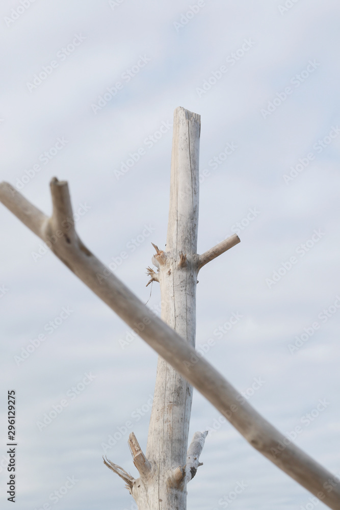 driftwood on the beach in neutral colors