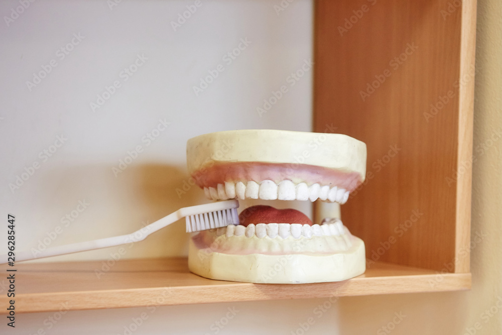 teeth layout for the dentist with a toothbrush. still life on the subject of dentistry and stomatology, odontology, medicine