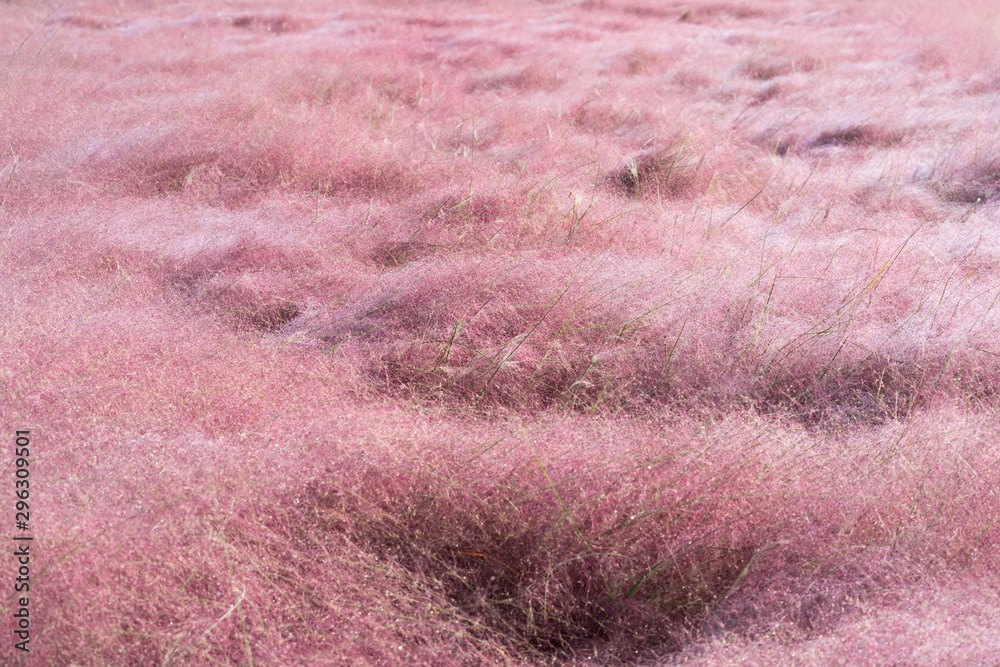 Field of Pink Muhly grass or Muhlenbergia Capillaris in full bloom