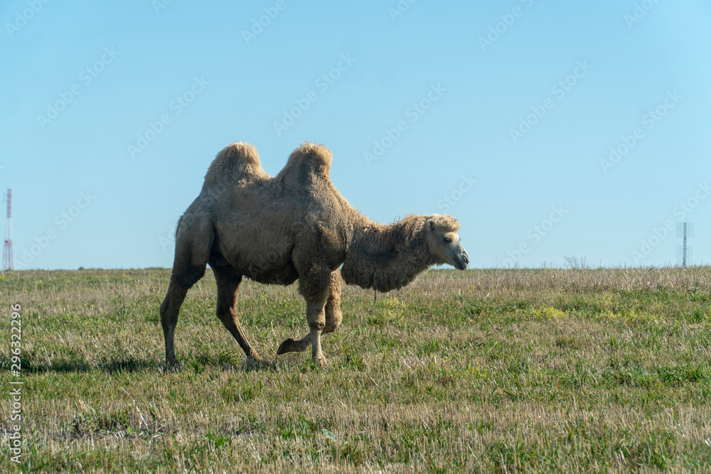 two-humped camel in nature