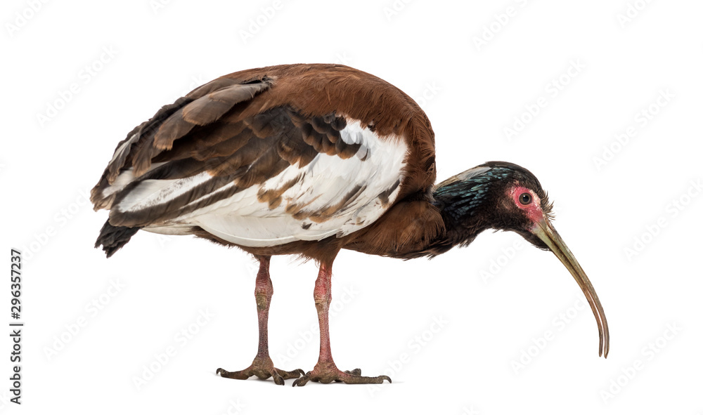 Madagascan ibis, Lophotibis cristata, isolated on white