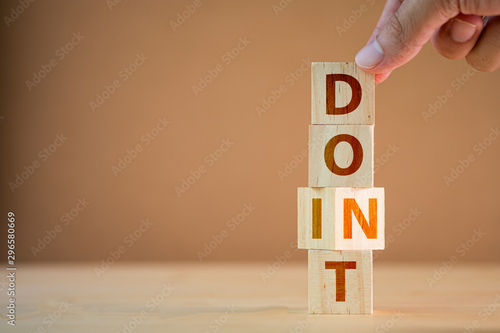 Hand flipping wooden cubes for change wording between don't to do it.Mindset for career growth business.