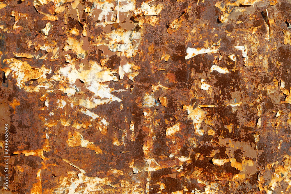 Traces of paper after a bunch of various notices were torn from a rusty metal wall